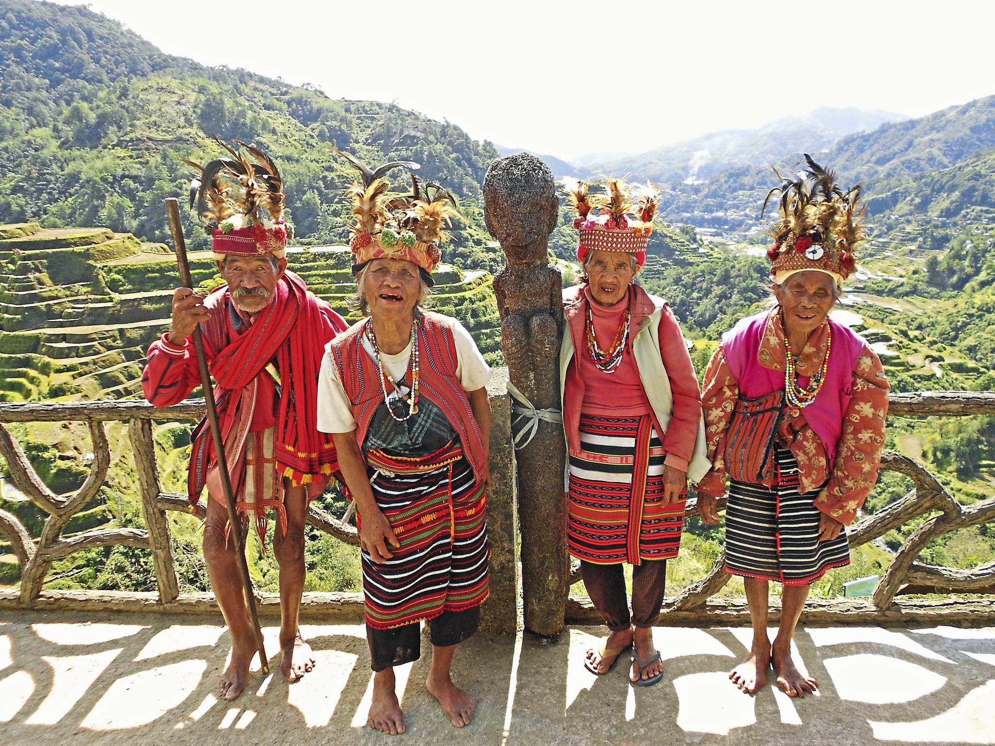 Am Morgen geht die Fahrt über den gewundenen Gebirgspfad des Mount Polis. Die schmale Strasse führt vorbei an moosbewachsenen Wäldern und dichter Vegetation, bis sich ein malerisches Mosaik aus Reis- und Gemüse-Terrassen öffnet, eingebettet in die klaren Gewässer des Chico-Flusses. Die niedrigeren Terrassen hier sind mit Steinen aus dem Fluss stabilisiert, und zwischen den Reiskulturen wachsen Süsskartoffeln und verschiedene Gemüsesorten. Kleine, strohgedeckte Hütten, sogenannte «allang», markieren die Hänge und dienen zur Aufbewahrung von Ernteüberschüssen und landwirtschaftlichen Vorräten