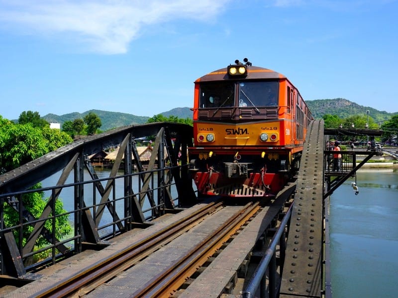 Ihr letzter Stopp des Tages ist die weltbekannte Brücker am River Kwai, ein Symbol des Zweiten Weltkriegs und Schauplatz eines der bekanntesten Kriegsdramen der Filmgeschichte. Einst Teil des berüchtigten Death Railway, wurde die Brücke von alliierten Kriegsgefangenen und asiatischen Zwangsarbeitern unter unmenschlichen Bedingungen errichtet. Als krönenden Abschluss steigen Sie selbst in einen Zug und erleben eine Fahrt auf einem erhaltenen Abschnitt des Death Railway. Diese Strecke schlängelt sich entlang steiler Felswände, durch üppige Dschungellandschaften und übe ein spektakuläres Holzviadukt.