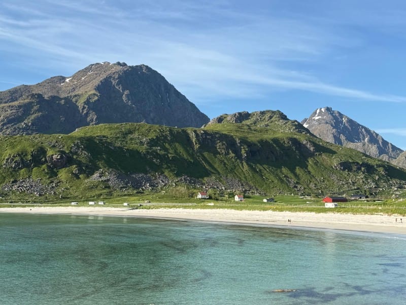 Willkommen auf den Lofoten! Schon vor der Einfahrt in den Hafen von Moskenes beeindrucken die steil aufragenden Bergspitzen der Inselgruppe. Entdecken Sie die charmanten Lofoten-Orte Å und Reine, die mit ihren roten Fischerhütten und ihrer einzigartigen Lage zwischen Meer und Bergen verzaubern. An einem der typischen Strände der Lofoten erwarten Sie türkisblaues Wasser und weisser Sand – ein Anblick, der an die Südsee erinnert und dennoch typisch nordisch ist.