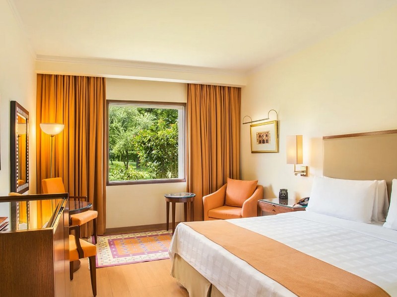 Übernachtung im 5* Trident Hotel Agra. Das komfortable Hotel befindet sich nur wenige Kilometer vom Taj Mahal entfernt und ist eingebettet in gepflegte Gärten. Es ist gebaut im Stil mit Anklängen an die Mogul-Architektur: Innenhöfe, Gartenanlagen und Springbrunnen. Geniessen Sie den gepflegten Aussenpool, Fitnesscenter, Spa sowie eine Auswahl an Restaurants und Bars. Die Zimmer sind hell und freundlich eingerichtet und bieten meist Blick auf den Garten, Innenhof oder Pool.