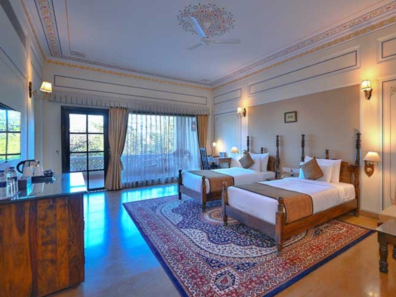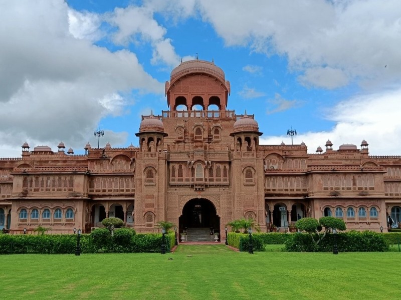 Übernachtung im Laxmi Niwas Palace. Ursprünglich als königliche Residenz erbaut, handelt es sich bei diesem Heritage Hotel um einen imposanten Bau aus rotem Sandstein, kunstvollen Stein- und Holzarbeiten und fein geschnitzen Fassaden. Die Zimmer sind aufwensig renoviert und kombinieren historischen Charme mit modernem Komfort. Das Herz der Anlage ist der Innenhof mit Garten und Springbrunnen und gibt Ihnen das Gefühl in einem echten Palast zu wohnen. Es gibt einige Restaurants und Bars sowie Aussenpool, Sauna, Fintess und Sportanlagen. Abends finden regelmässig kulturelle Programme statt, wie z.B. Musikaufführungen, Volkstänze, etc. Das Laxmi Niwas Palace befindet sich zentral in Bikaner, anhe dem Junagarh Fort.