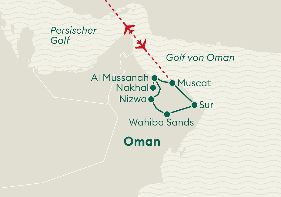 Im Sultanat Oman, wo moderne Eleganz auf traditionelle Wurzeln trifft, erleben Sie den Orient in seiner authentischsten Pracht. Malerische Wadis, imposante Festungen, faszinierende Wüstenlandschaften und lebendige Städte erwarten Sie. Geniessen Sie omanischen Kaffee und frische Datteln, während Sie den Zauber eines unvergesslichen Sonnenuntergangs auf sich wirken lassen.