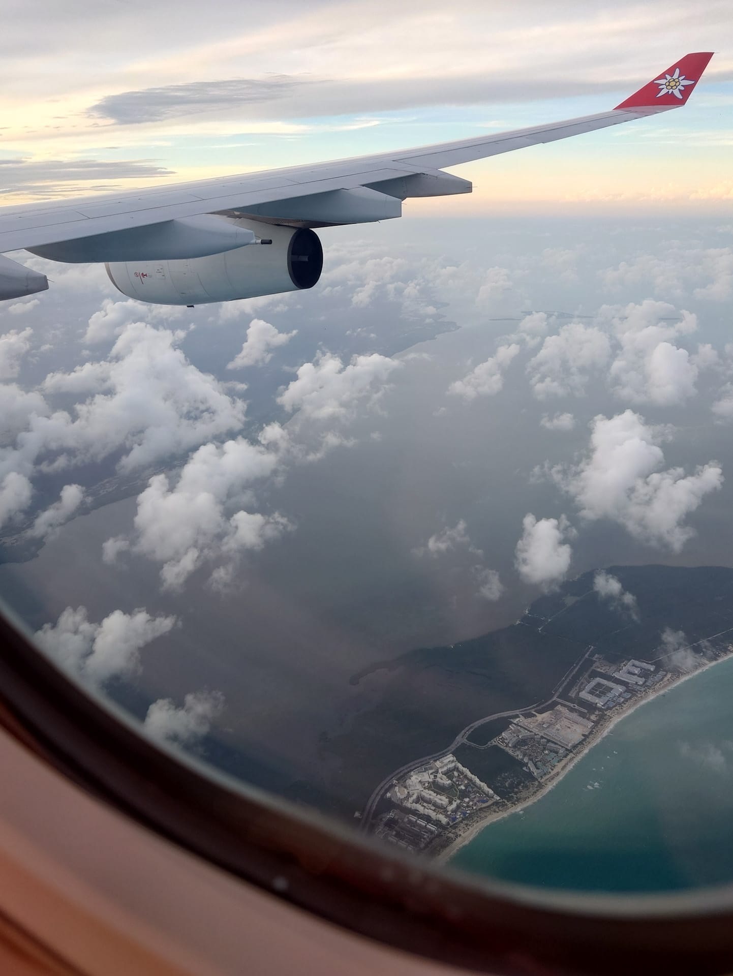 Als wir gegen 18 Uhr Lokalzeit Cancún anflogen, war deutlich zu sehen: Yucatán ist ziemlich flach und von dichtem Dschungel bewachsen. Die Wolken türmten sich am Horizont und die tief stehende Sonne bemühte sich um eine goldene Abendstimmung über dem Golf von Mexiko. Eine halbe Stunde später war es dunkel.